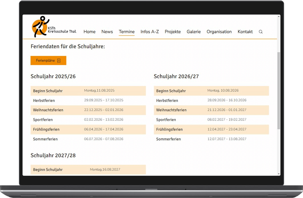 Die neue Website bietet eine übersichtliche Terminliste, eine informative FAQ-Seite und eine filterbare Darstellung aller Lehrpersonen – benutzerfreundlich, barrierearm und auf mobilen Geräten optimal bedienbar.