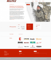 Die Firma Militex AG verfügt über ein umfangreiches Sortiment speziell für Schweizer Armeeangehörige. Ich durfte den kompletten Internetauftritt neu gestalten. Der Online Shop soll ansprechend aber auch einfach über Smartphones bedienbar sein. Auf der Informationsseite über RS-Tipps, können die empfohlenen Artikel direkt in den Warenkorb gelegt werden und der Bestellvorgang über einen Onepage-Checkout abgeschlossen werden. . Die Firma Militex vertreibt zudem auch Zippo Feuerzeuge, wobei diese der Käufer durch eine Gravur personalisieren kann. Für die massgeschneiderten Kampfstiefel sind spezifische Angaben über die Fussgrösse, sowie die Möglichkeit die Fussumrisszeichnung bei der Bestellung mitgeben zu können.