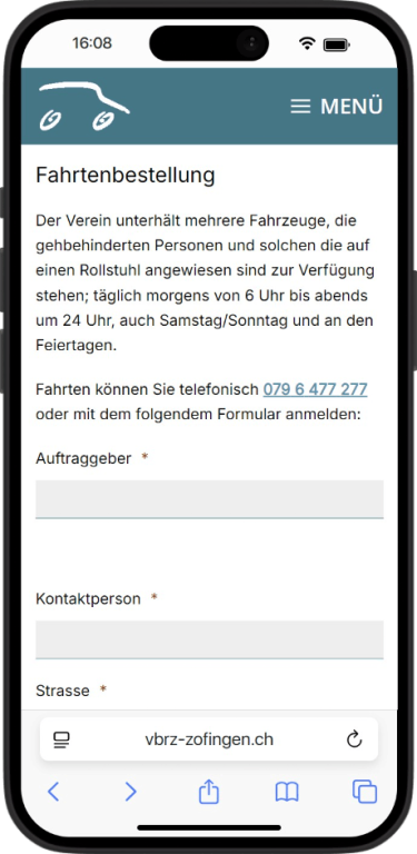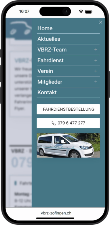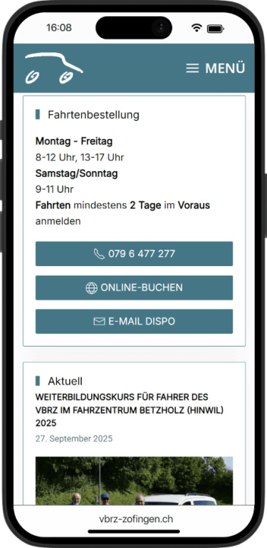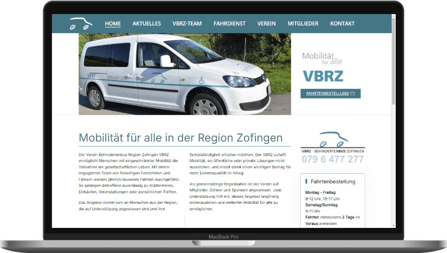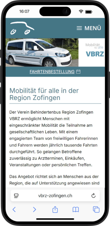 Für den VBRZ Zofingen durfte ich den Webauftritt gestalterisch neu ausrichten und den Fokus gezielt auf Barrierefreiheit, Zugänglichkeit und eine einfache Bedienbarkeit legen. Ziel des Relaunchs war es, die Angebote des Vereins für alle Nutzerinnen und Nutzer klar verständlich zugänglich zu machen und wichtige Inhalte wie Fahrdienst, Fahrtenbestellung, Kontakt und Vereinsinformationen schneller auffindbar zu strukturieren.